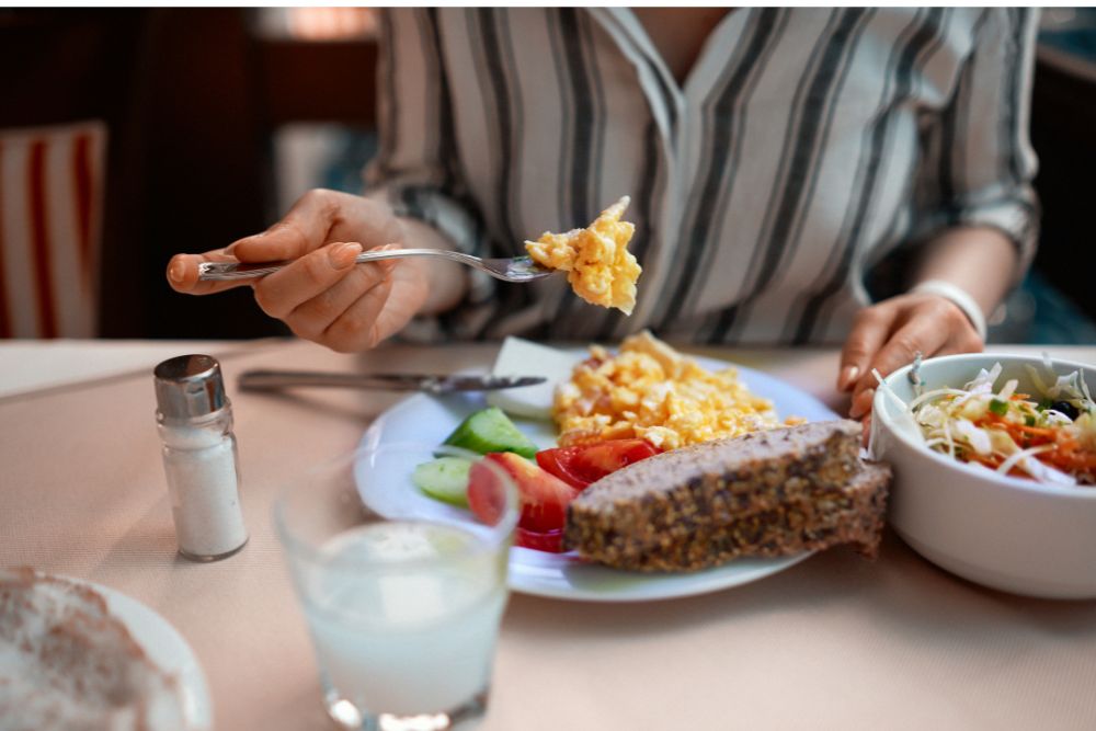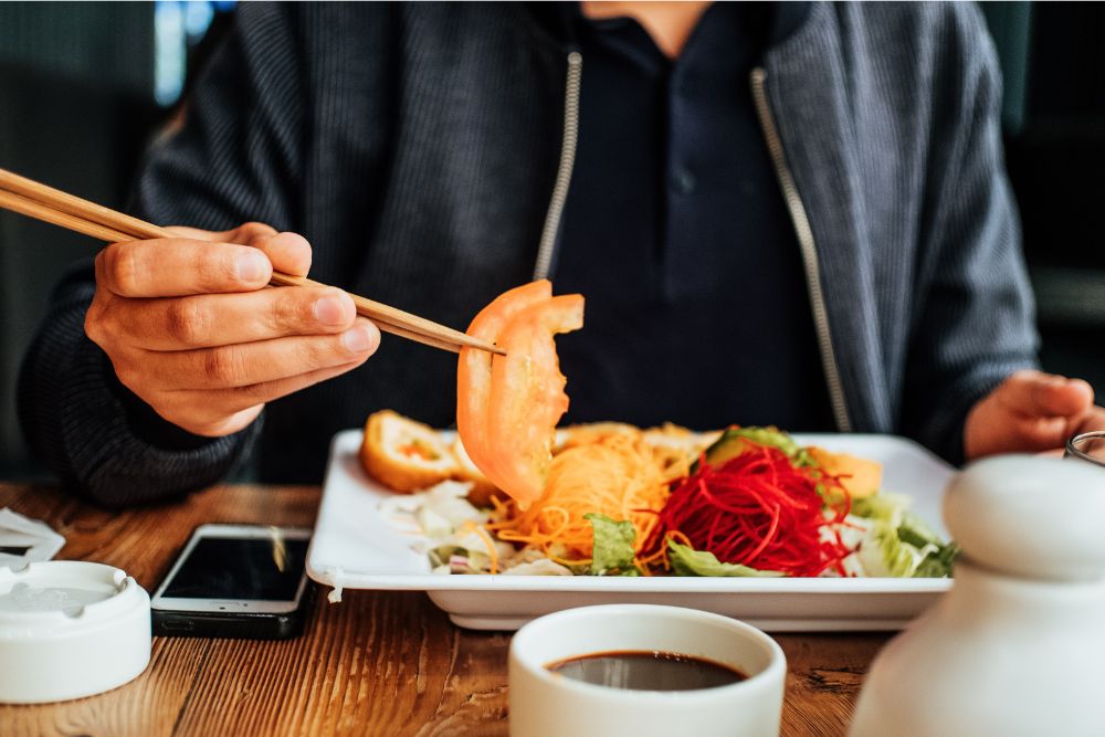 • Eat your meals slowly. It takes 20 minutes for your body to register that it is full. Choose or first eat the